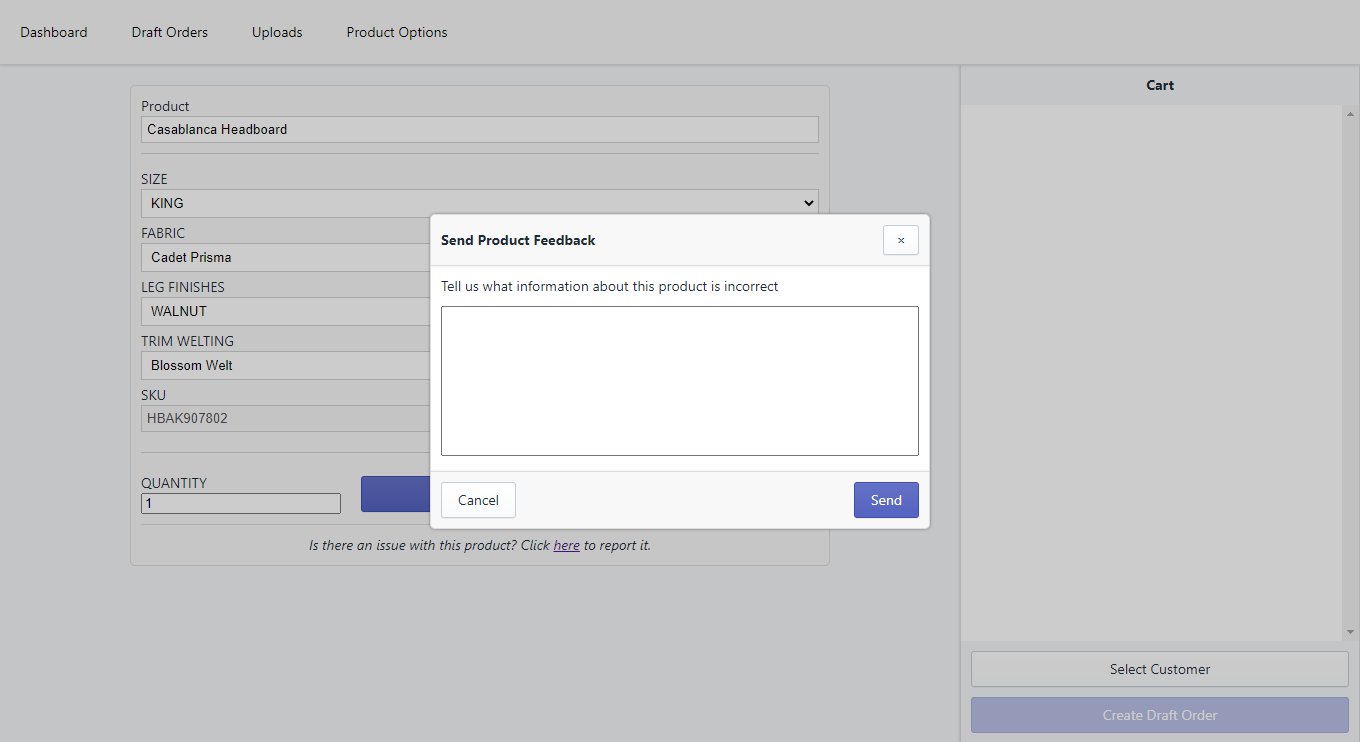 - Enter the total number of pieces you would like to add to your draft order in the Quantity field
