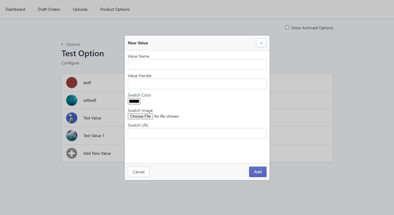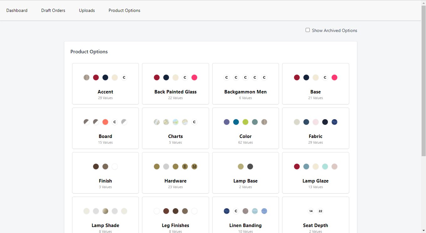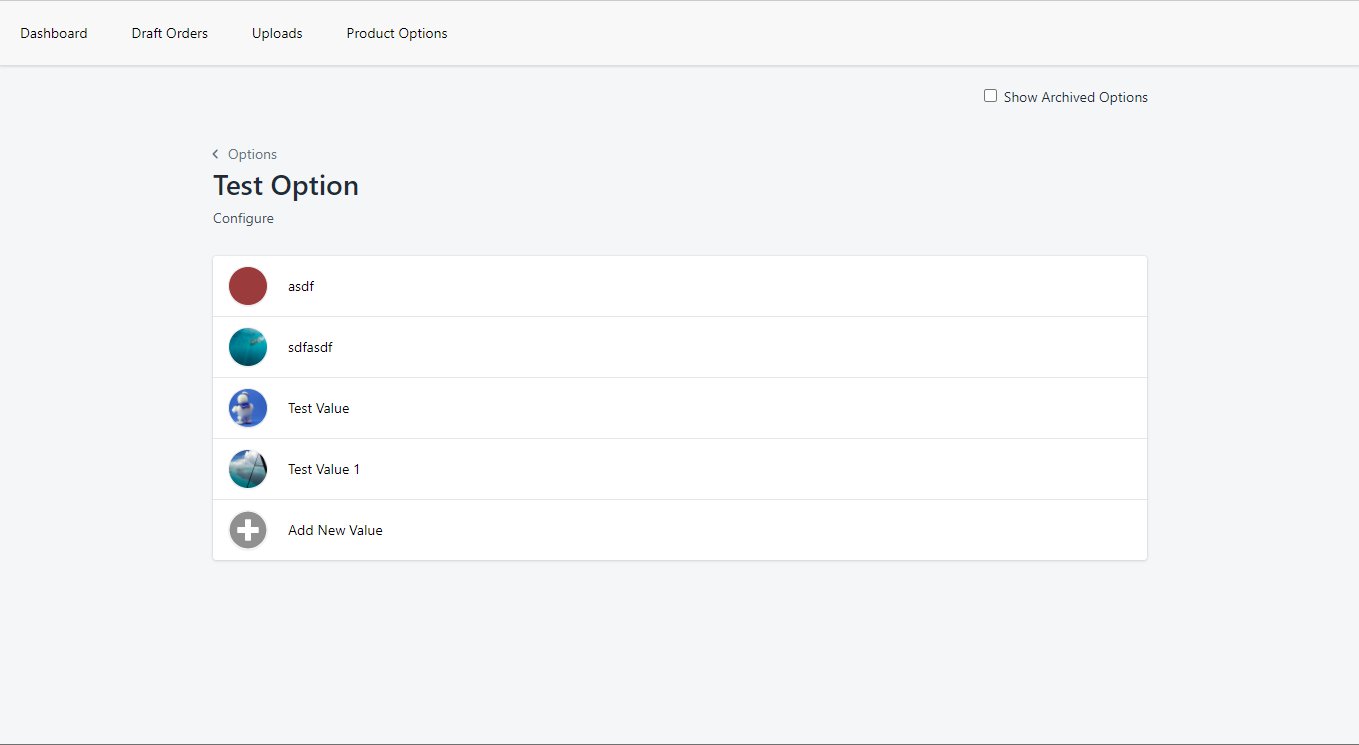 In the top-right corner of the option manager, you will see a checkbox allowing you to view Archived options. As product options change over time, you may no longer have the ability to offer a specific option. In this case, you can Archive the option. If you wish to view archived options, check this box and the options will be visible within the Option Manager.