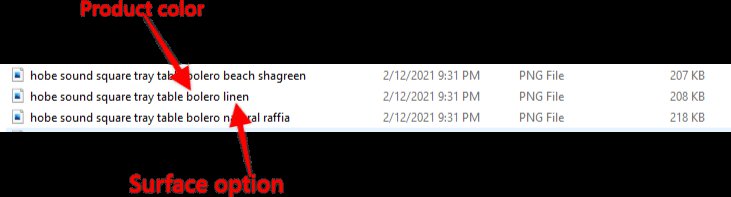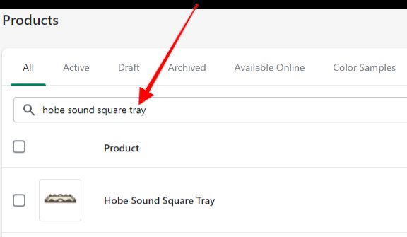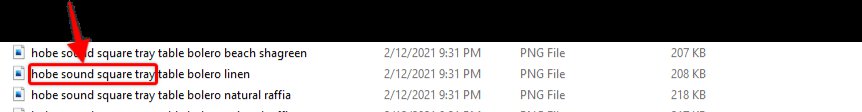 To find the name of the product that the image corresponds to, refer to the file name of the image that you want to upload. In this example the product is hobe sound square tray.
