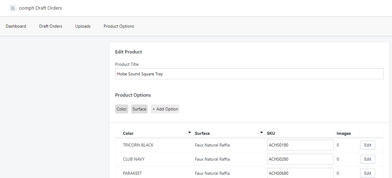 Find the corresponding product variant from the options in the oomph Draft Orders
