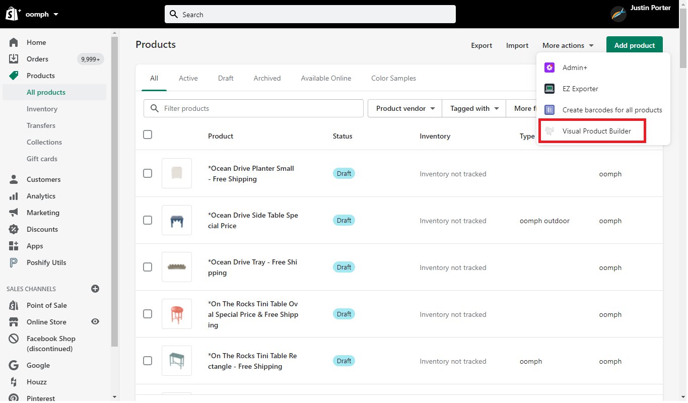 The Visual Product Builder allows you to create new products using a simple interface. You can create new products, save them for later modification, and import them into your Shopify products when you are ready to do so.