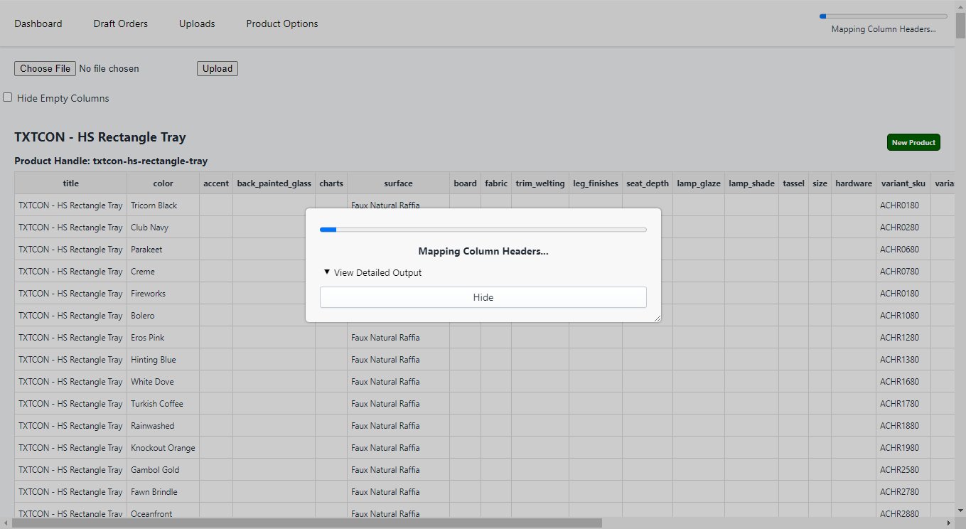 The oomph Product Engine application allows you to provide a CSV file that will create or update products on your Shopify store.