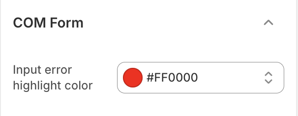 If the Add to Cart button is clicked before all required fields are filled, the empty required fields will be highlighted in the color specified in the theme settings under "COM form," as shown in the screenshot below: