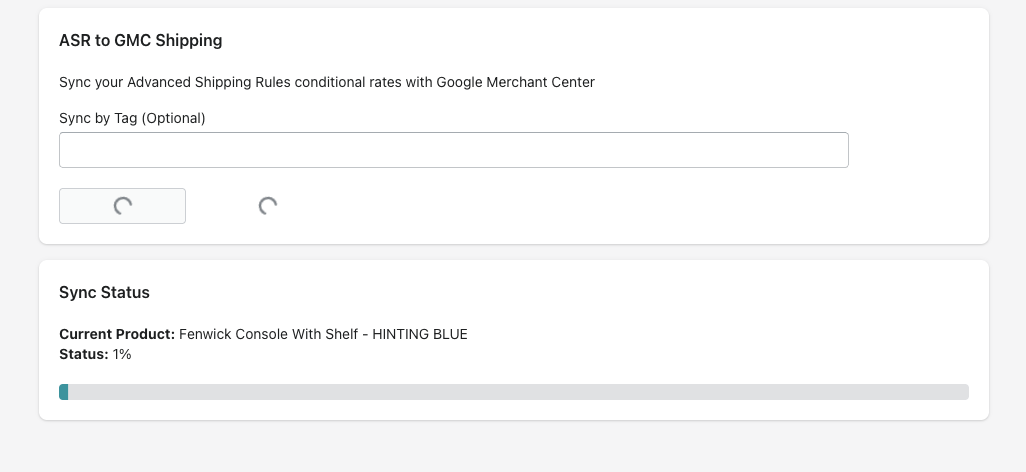 - Click the RESYNC PRODUCTS button - wait 30 mins for sync to finish