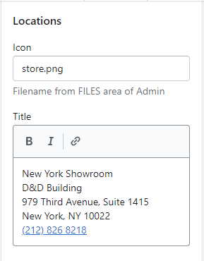 You have to add 2 location blocks per location. One block is for the showroom location / details. The other is for the hours.