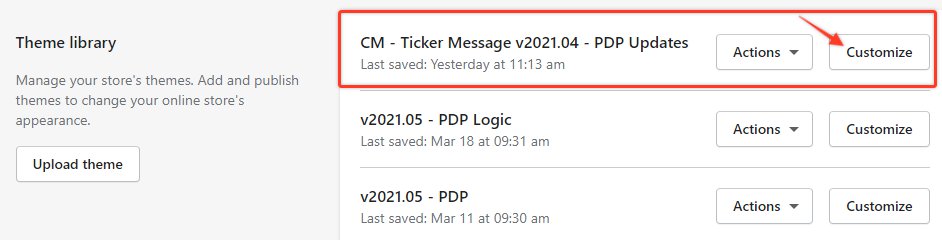 Select “CUSTOMIZE” on the “CM - Ticker Message v2021.04 - PDP Updates” theme“