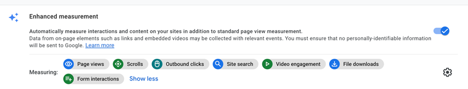 - Review the enhanced measurement settings and ensure that the relevant options are enabled.