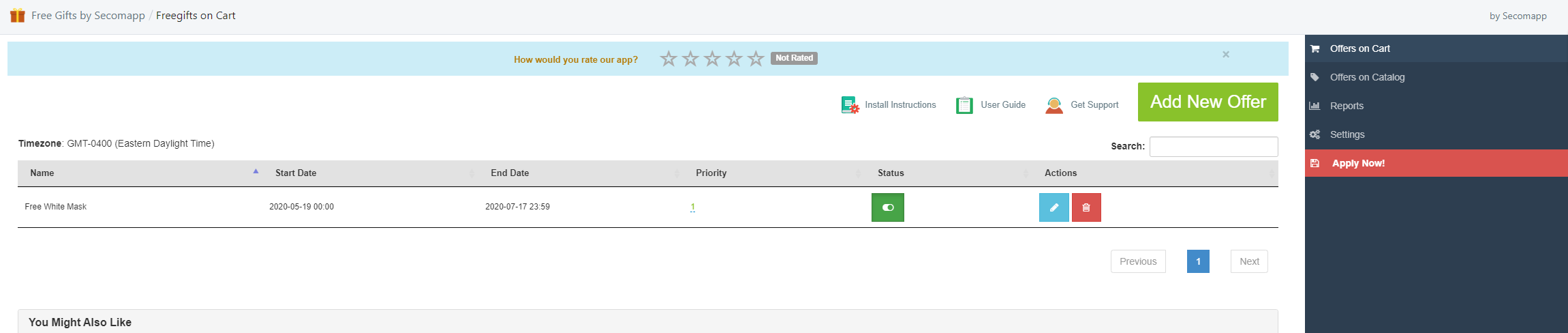 - Open Free Gifts by Secomapp from the APPS area of admin panel