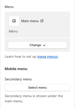 Menu = The menu you create in the navigation section of the admin that displays collection links, product links, and page links.