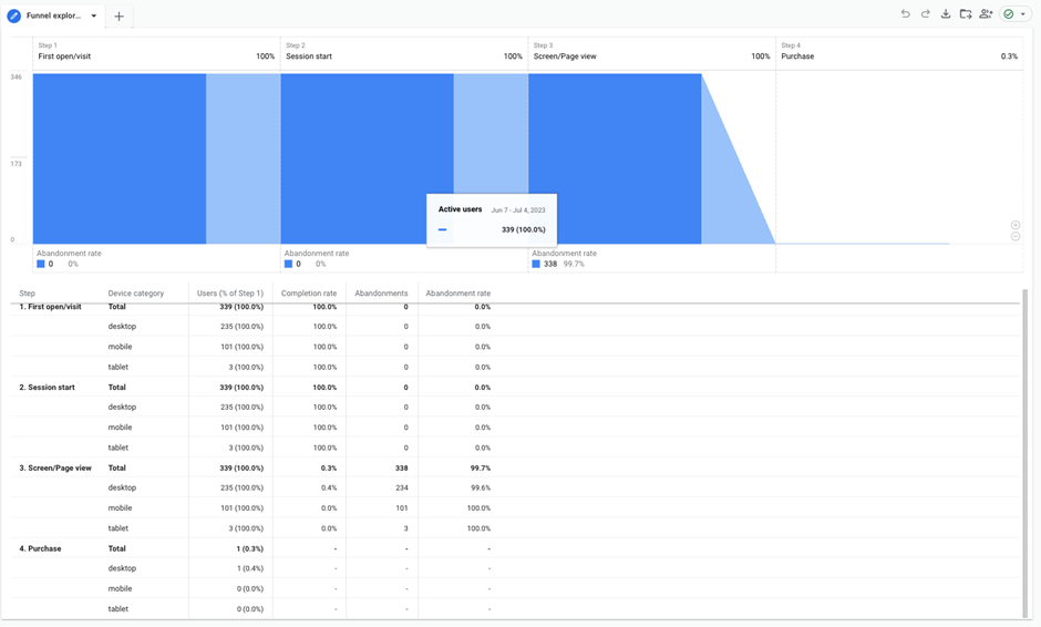 d. Within the "Explore" section, you'll find various analysis options to explore your GA4 data.